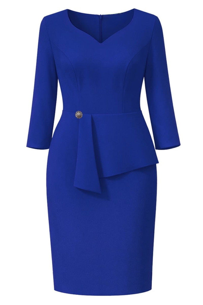 A derékrésznél kialakított asszimetrikus megoldás különleges vizuális fókuszt ad a ruhának: karcsúsít, formál, és természetes női arányokat teremt.