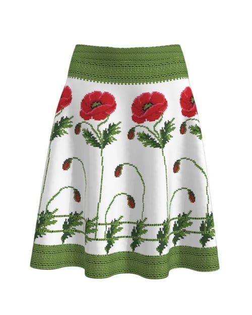A szoknya egyik különlegessége a mintázat kontrasztos játékossága: természet ihlette motívum, mégis karakteres és modern – minden tekintetet magára von.
