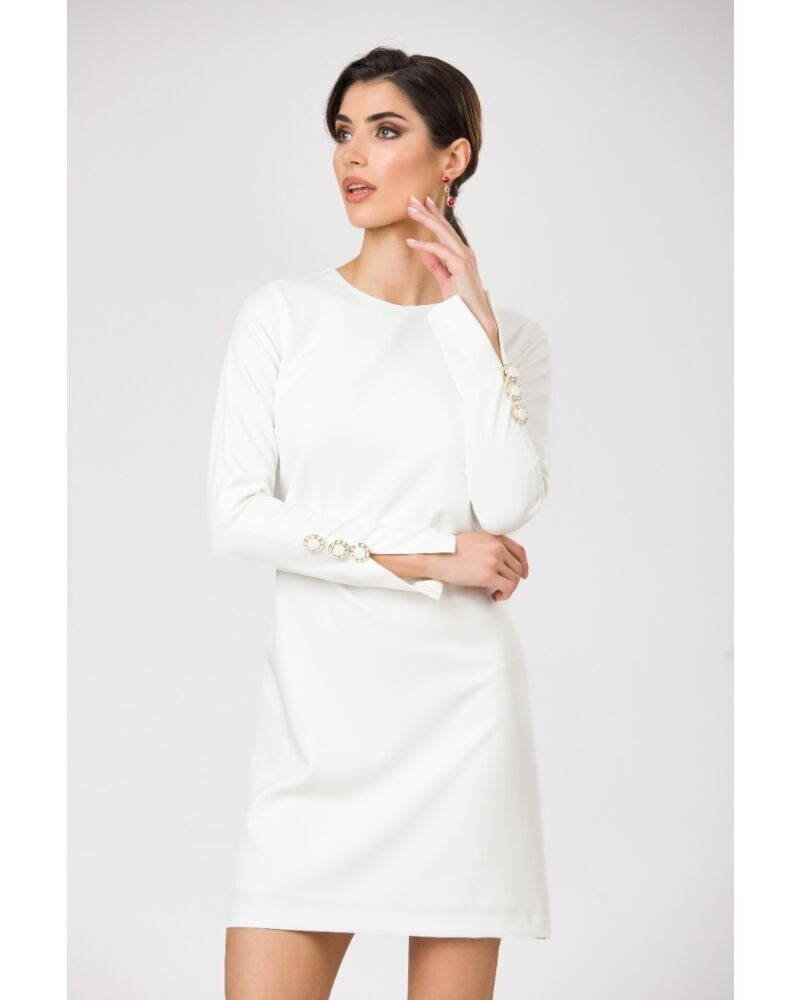 Fedezd fel az eleganciát és kifinomultságot ebben a klasszikus, mégis merész ruhában, amely az egyszerű vonalvezetést különleges részletekkel teszi izgalmassá.