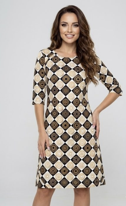 A geometrikus minta nemcsak látványos, hanem optikailag nyújtja az alakot, miközben könnyed, nőies esést ad a fazonnak.
