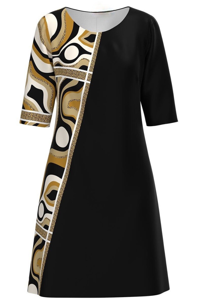A Ravello Black ruha letisztult, A fazonú szabásával és látványos, geometrikus printjével a modern női elegancia megtestesítője.