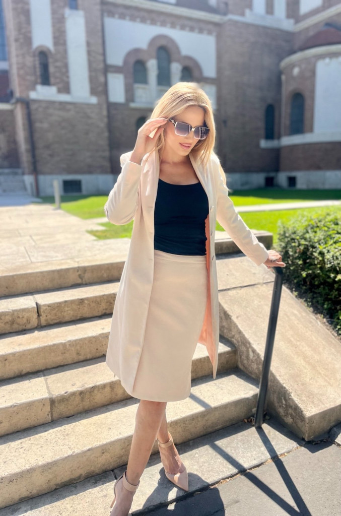 Viseld nude magassarkúval, bokacsizmával vagy egy sötét blúzzal – minden változatban modern, kifinomult hatást kelt.