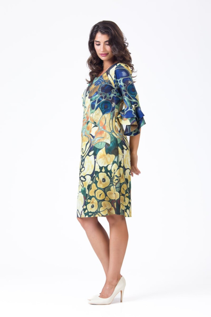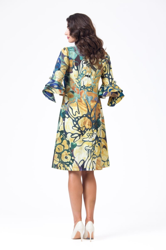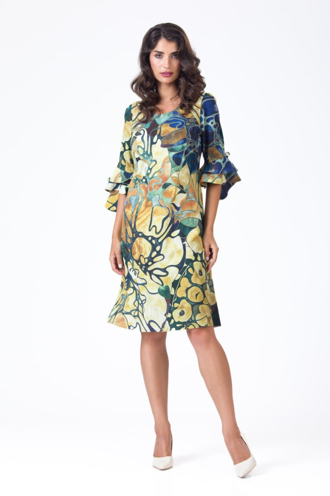 Ez a különleges ruha egyszerre idézi meg a nyárból őszbe hajló természet színvilágát és a modern nő könnyed stílusát.